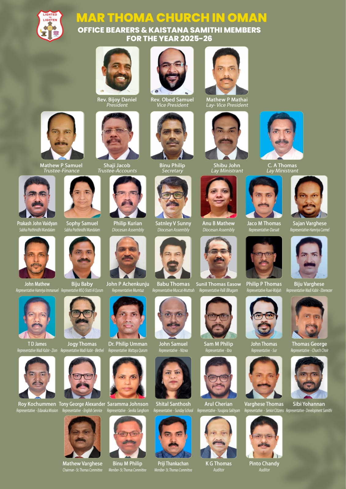 | 1 | President | Rev. Bijoy Daniel | 99437492 / vicar@marthomachurchoman.org | |